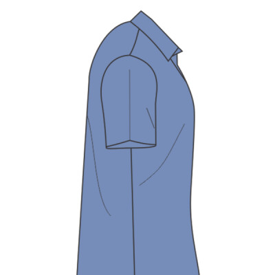 • Two button-thru, hex-style pockets with angled bartacks, bartacked pencil stall in left pocket