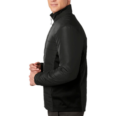 This jacket combines the warmth of low-bulk quilted insulation with flexible soft shell side panels for a trend-right, weather-resistant look.