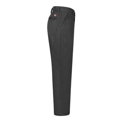 - Two slack-style front pockets, two set-in hip pockets, left pocket has button closure
